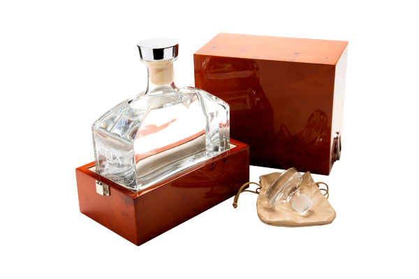 HDW CLIX is contained within a custom, hand-formed, lead free crystal decanter from Nouvel Studio and encased in an elegant, handcrafted burl wood case.