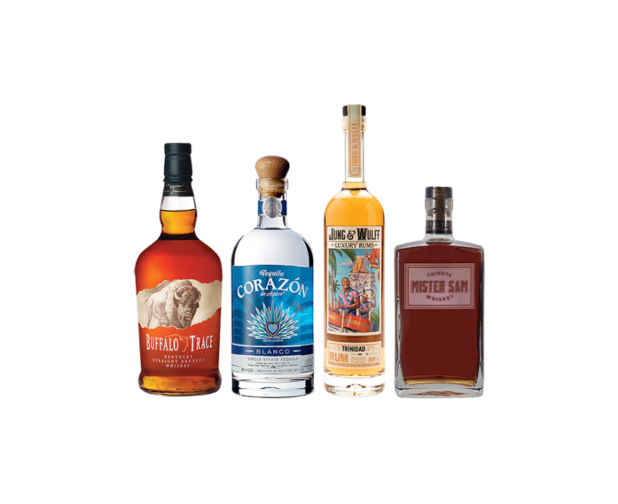 Buffalo Trace, Sazerac Rye, Wheatley, E. H. Taylor Jr, George T. Stagg , Van Winkle, W.L. Weller, 1792, Blanton’s, Southern Comfort, Handy & Schiller, Merchants Exchange, O.F.C., Eagle Rare, HDW CLIX, Peychaud's, Herbsaint, Mr. Boston, Platinum, Buffalo Trace Distillery Bourbon Cream, Rain, Bowman Brothers, Elmer T. Lee, Benchmark, Miles', Thomas S. Moore, Fireball, 99 Brand, Dr. McGillicuddy's, Frïs, Di Amore, Ryan’s, Stirrings, Firefly, Old Charter, Grind, Praline, Bittermens, Tinkerman's, Saltworks Property, Rockhill Farms, Hancock's.